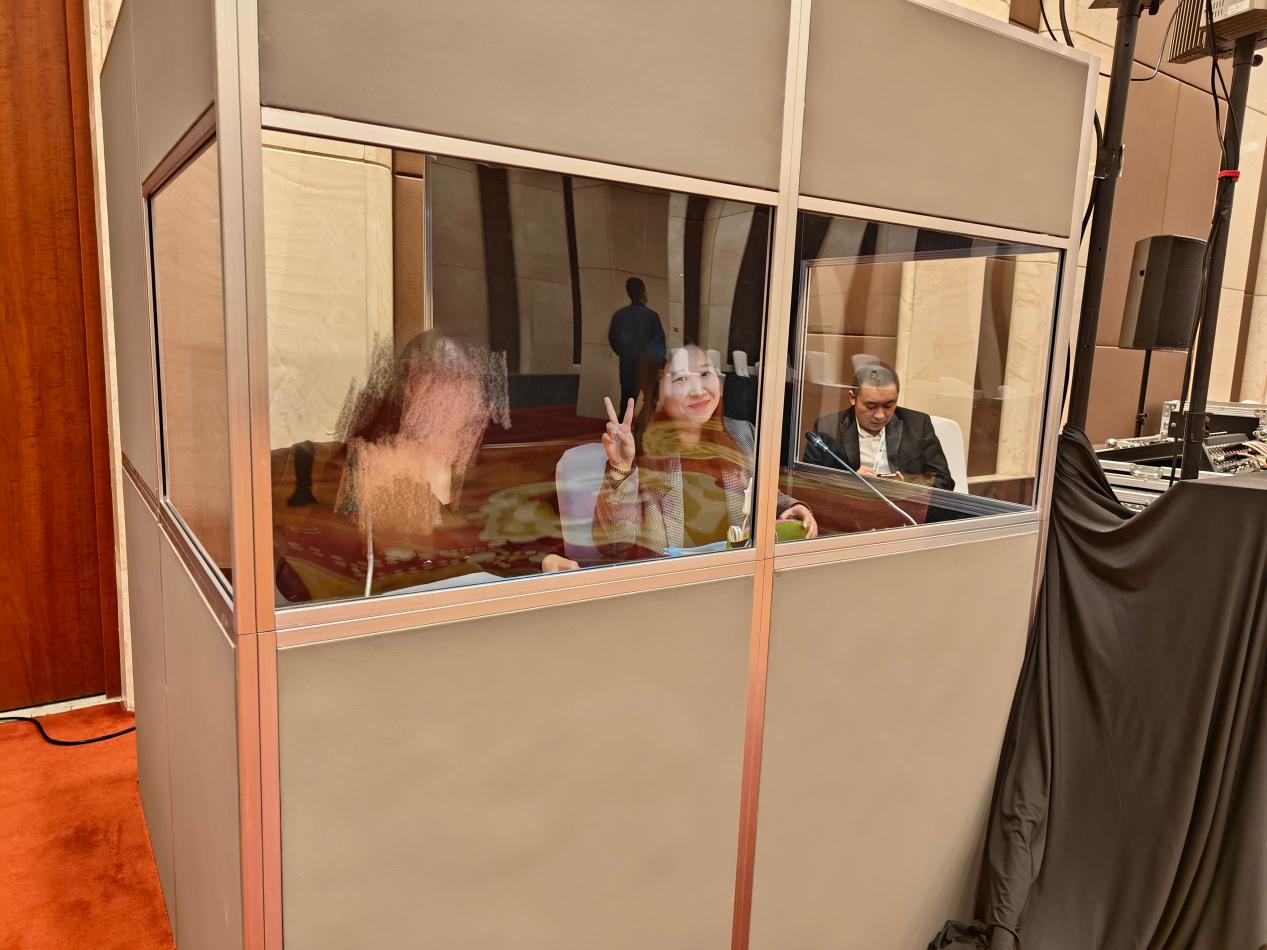 缅甸语专业张惠美老师(右二)为中缅科技部长双边会谈提供同传服务