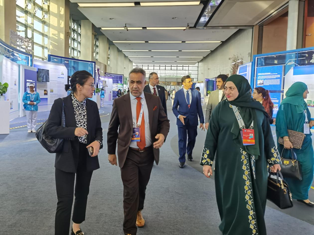 我院师生在组委会统筹安排下,对口支援多国政要团语言服务。阿拉伯语专业谢博老师参与了阿曼政要团“一对一”接待工作,曾欣和黄威老师参与了摩洛哥代表团接待工作;泰语专业梁浩老师参与了泰国政要团的接待保障工作,张倩霞老师为中国科技部部长阴和俊与泰国高教与科研创新部部长苏帕蔓会谈及《中华人民共和国科学技术部与泰王国高等教育与科研创新部关于共同实施科技人文交流计划的谅解备忘录》签署仪式提供同声传译服务;缅甸语专业张惠美老师为中国科技部部长阴和俊和缅甸科技部部长苗觉登双边会谈提供同声传译,为苗登觉部长一行在渝参会期间提供陪同翻译服务;马来语专业韩呼和老师参与了马来西亚科技部代表团接待工作,提供翻译服务。阿拉伯语专业研究生董晶、李燕、陆宣、黄佳钰参与了大会志愿者服务。他们以出色的专业素养、丰富的外事经验、超群的综合素质圆满完成了各项工作,赢得了与会嘉宾的一致赞誉,充分展现了我院“多语互促、多元互鉴”的人才培养理念和国际化特色发展路径。