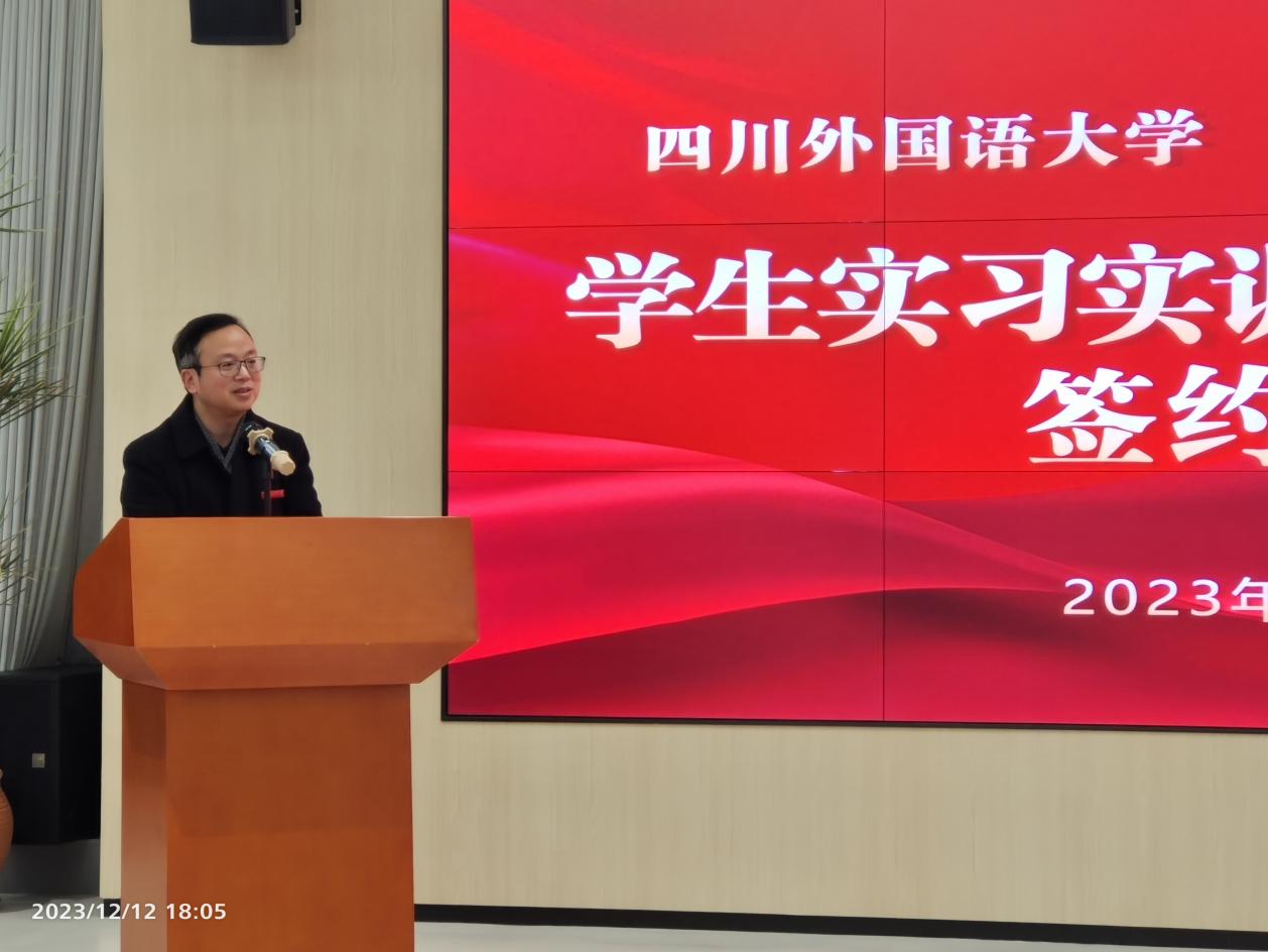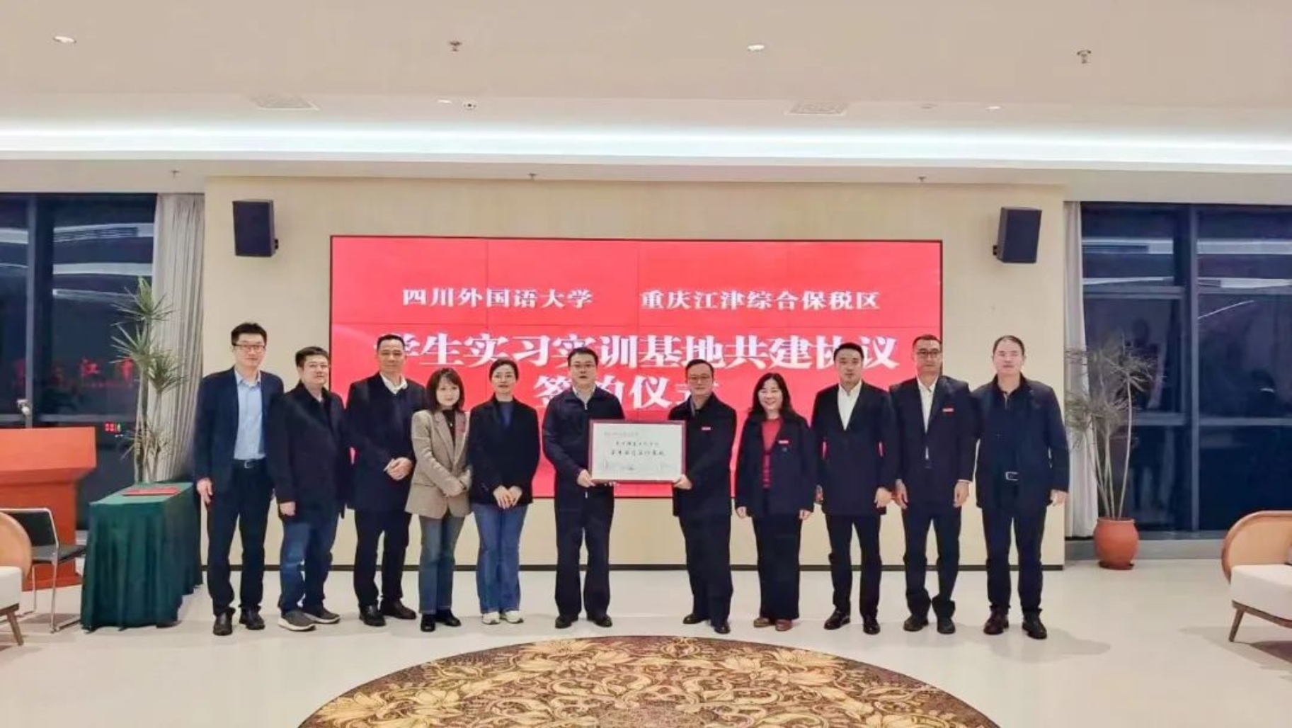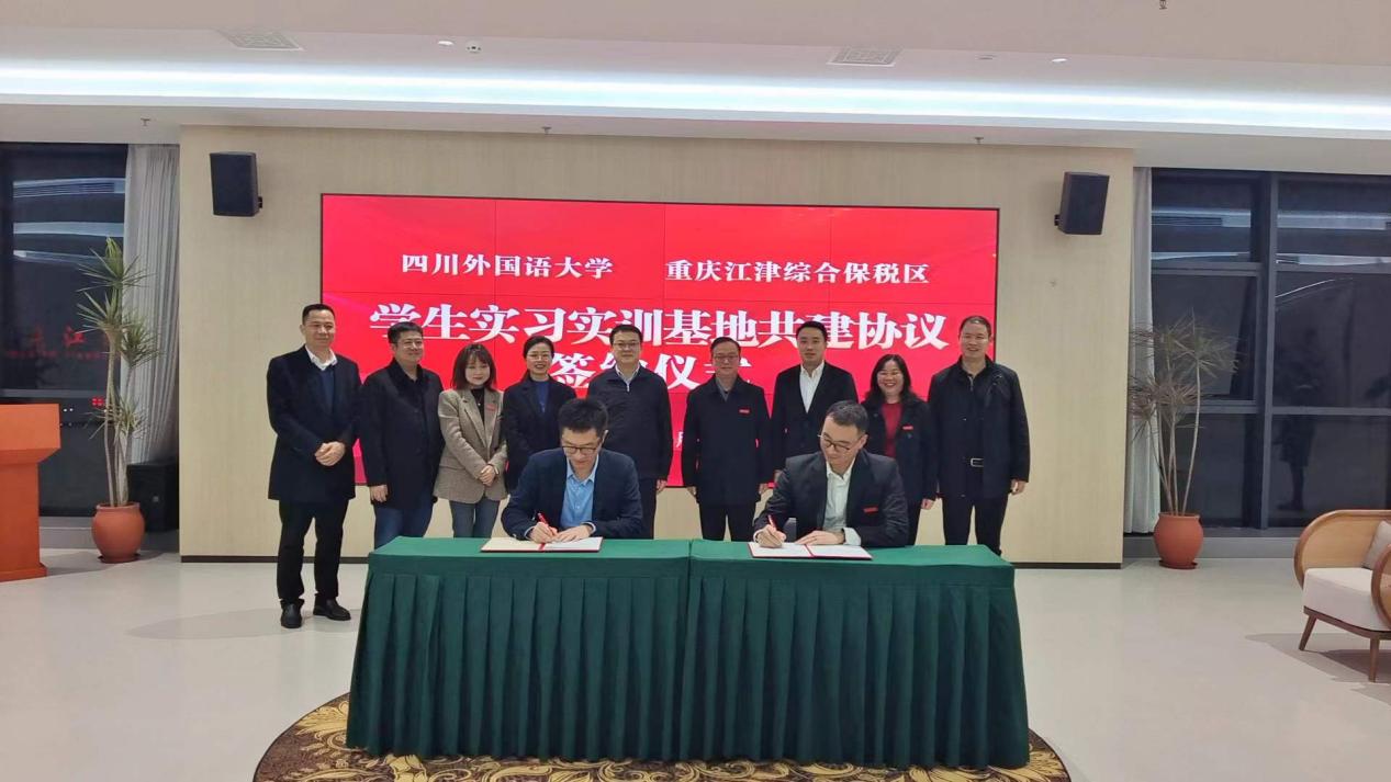 为落实立德树人根本任务提升人才培养质量、丰富实践教学内容、助推社会经济发展、服务国家战略建设,12月12日,四川外国语大学重庆江津综合保税区管委会共建“四川外国语大学东方语言文化学院学生实习实训基地”协议签约暨授牌仪式在江津综合保税区隆重举行。四川外国语大学副校长祝朝伟江津区委常委、区政府副区长、江津综合保税区党工委书记刘晟出席签约仪式,共同向实习实训基地授牌。东方语言文化学院党总支书记廖礼彬与江津综保区管委会副主任熊承宇代表双方签订共建实习实训基地协议。东方语言文化学院院长罗文青、党总支副书记陈睿,江津综保区管委会(珞璜工业园发展中心)主任袁理江津区委组织部部务委员、区人才办副主任朱玉、江津区教委副主任刘冀川、江津综保区发展集团董事长黄树良等共同见证签约。