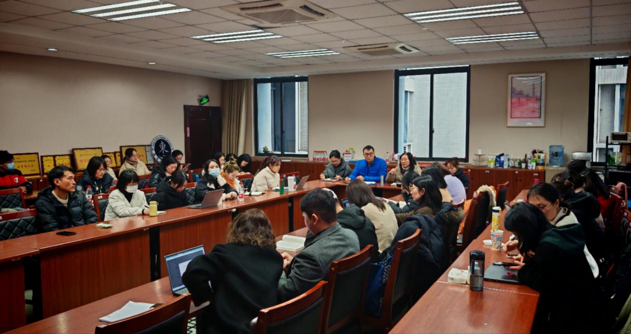 3月1日下午13点,东方语言文化学院在立德楼C216召开全院教职工大会暨师德师风、意识形态、廉政建设、安全工作布置会。院长罗文青、党总支书记廖礼彬、党总支副书记陈睿、副院长吴昊、院长助理朴春兰及学院全体教职员工参加了会议。会议由陈睿副书记主持。